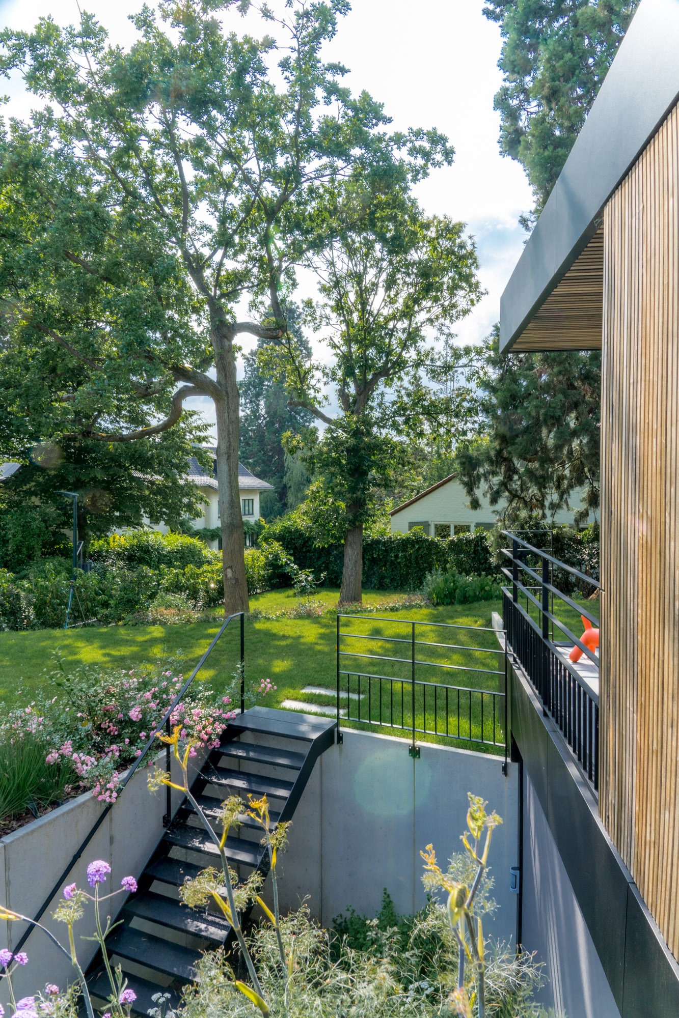 Ce projet de démolition et de reconstruction de 2 maison trois façades s’inscrivent dans un cadre verdoyant (ancien parc), sur un terrain présentant un dénivelé naturel d’environ 4 mètres, pleinement exploité pour enrichir l’architecture et les usages.