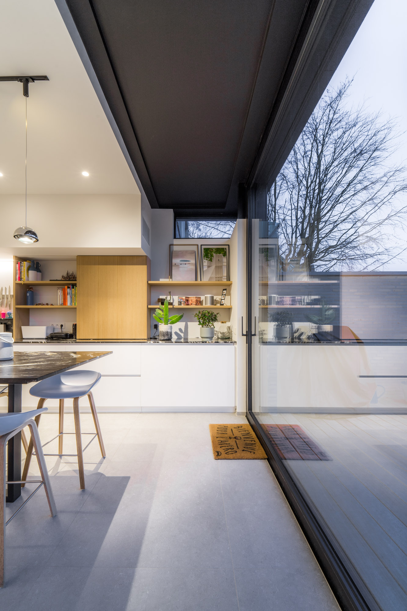 L’ensemble du projet se distingue par une attention particulière portée aux détails et aux usages : rangements, cuisine et mobilier sont réalisés sur mesure, assurant une parfaite cohérence entre architecture, fonctionnalité et esthétisme contemporain.
